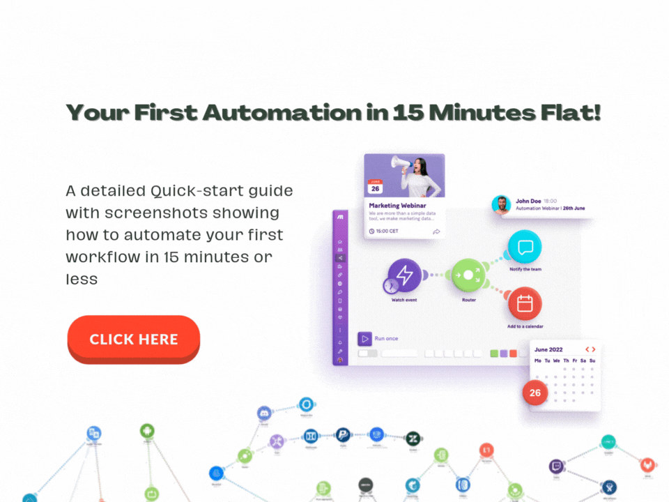 “Your First Automation in 15 Minutes” is your no-BS, no-tech-jargon crash course to getting your first workflow automated.