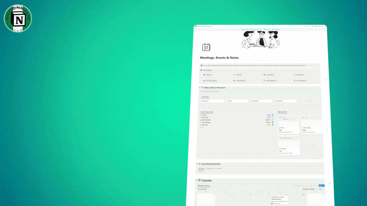 Meetings, Events & Notes template on Notion – your go-to solution for organizing all your important gatherings and jotting down key takeaways.