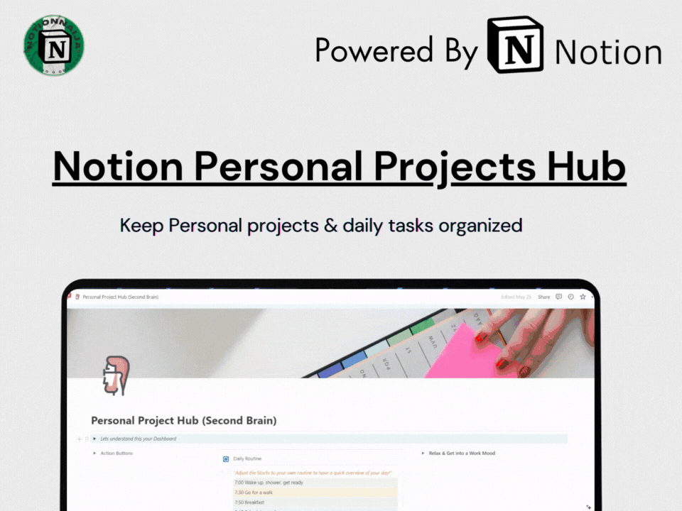 Maximize your productivity and download the Personal Projects Hub Template today! Available on desktop and mobile for convenient access anytime, anywhere. Get organized and achieve your goals with ease.