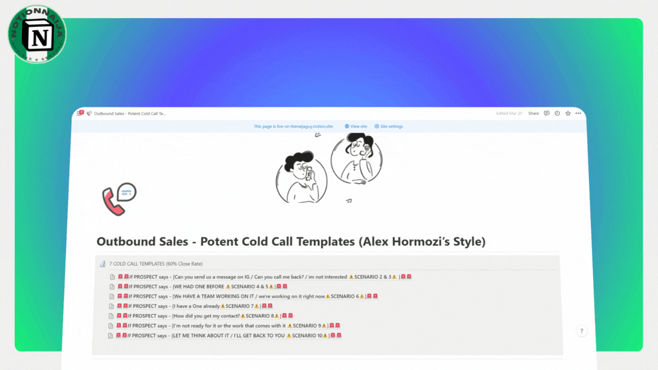 Maximize Your Cold Calls with Our Notion Template: Alex Hormozi-Inspired Scripts