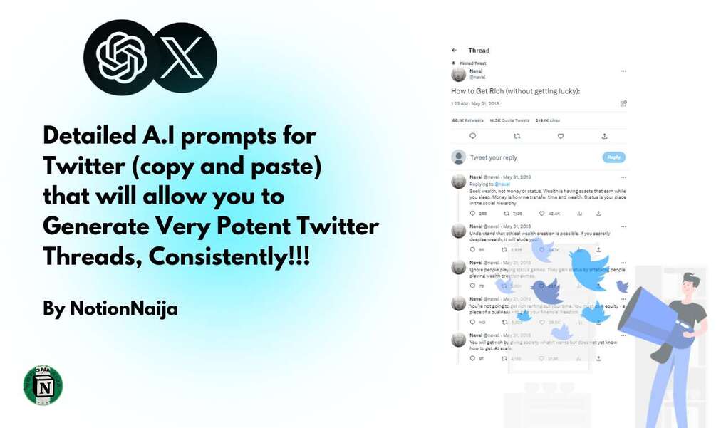 You get a Full detailed prompt to use with chatgpt to generate highly engaging, Non Generic or AI looking Twitter (X) Threads Consistently